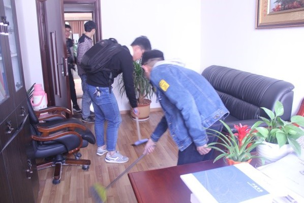 在本次活动中,党员同志们相互协助、搭配得当,有的在户外草坪上捡杂物、有的用扫帚清扫地面垃圾,有的用抹布忙着擦拭桌椅,有的用拖把进行扫尾工作...大家热情高涨,乐在其中。其中重点打扫了学院办公室、乒乓球室以及办公楼的走廊,充分展现了党员同志们不怕脏、不怕苦、不怕累,乐于冲在前面的精神风貌,诠释了“一名学生党员、一面先锋旗帜”的深刻含义。
